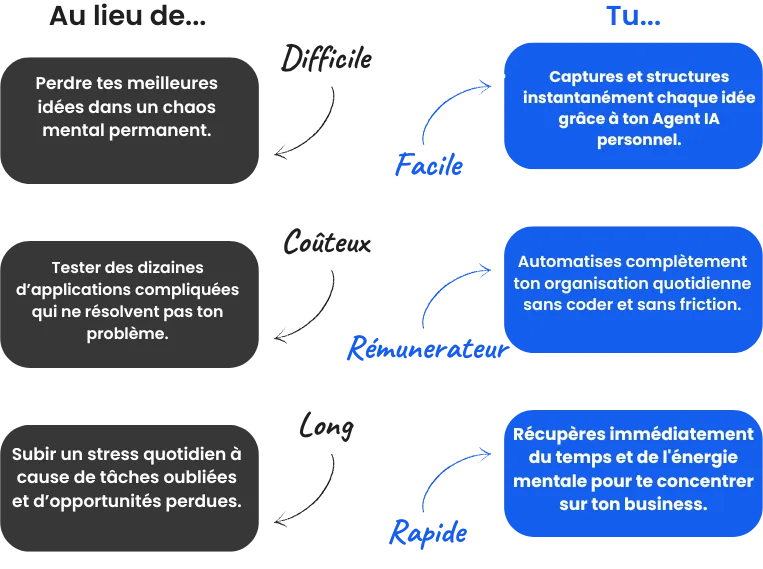 Que tu pouvais enfin capturer chaque idée précieuse, organiser automatiquement ton quotidien et ne plus jamais perdre une opportunité à cause du chaos mental…