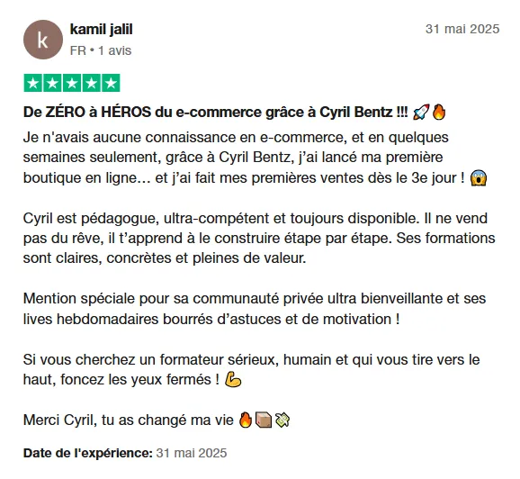 Maintenant, vous avez l’opportunité de dupliquer l’exact système que j’utilise encore et encore pour développer votre boutique Amazon en totale autonomie, et avancer avec une confiance qui vous sauvera de nombreuses de sommeil pendant vos lancements.