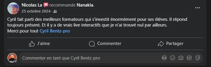 Garantie de réponse sous 24/48 heures à toutes vos questions liées à chaque vidéo de la formation. (Exemple)