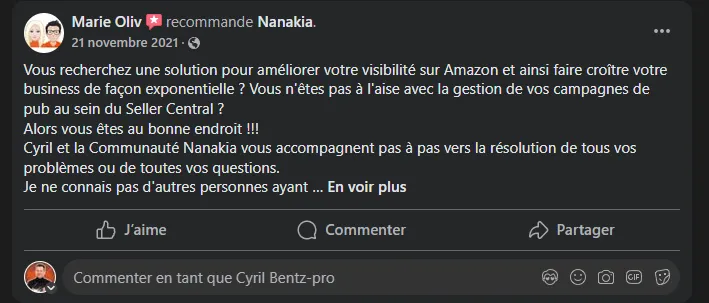 Vous aurez accès à une communauté de plus de 500 vendeurs Amazon experts pour partager vos problématiques
